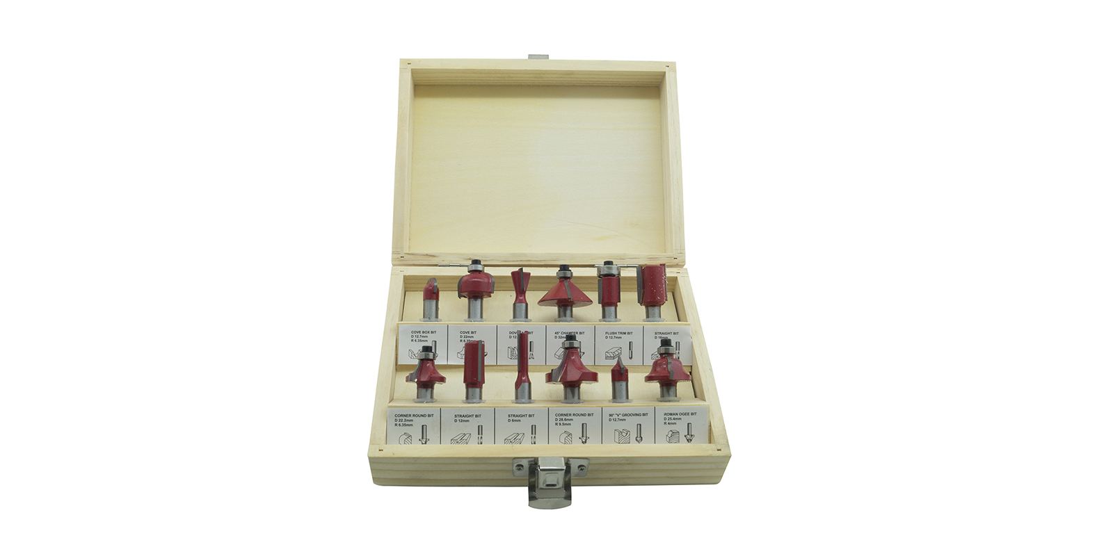 Kit composto da 12 punte frese coniche allargafori per lavorazioni del legno, per gli amanti del fai da te o per lavori professionali. Potrete eseguire facilmente scanalature, decorazioni e lavori nel legno. Composte interamente da lega metallica. Le punte sono di differenti misure, ed il tutto contenuto in una comodissima valigetta in legno da portare sempre con se o per riporre in ordine le frese dopo averle utilizzate.