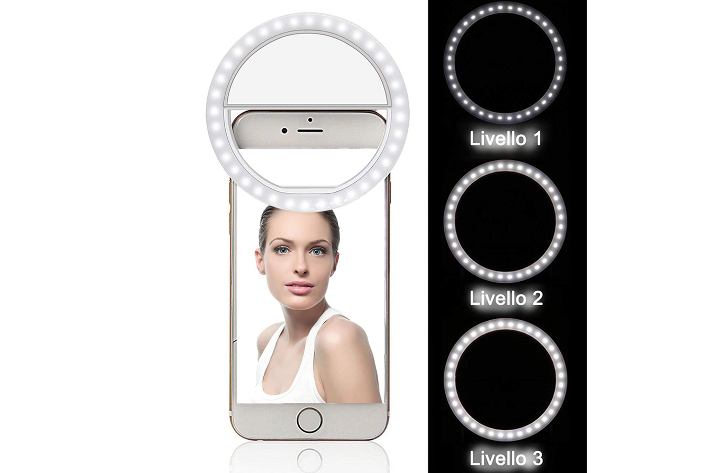 Anello luminoso con clip, una luce per molteplici scopi! Potrai realizzare i tuoi selfie e video migliori, un make up da urlo, e tanto altro ancora.