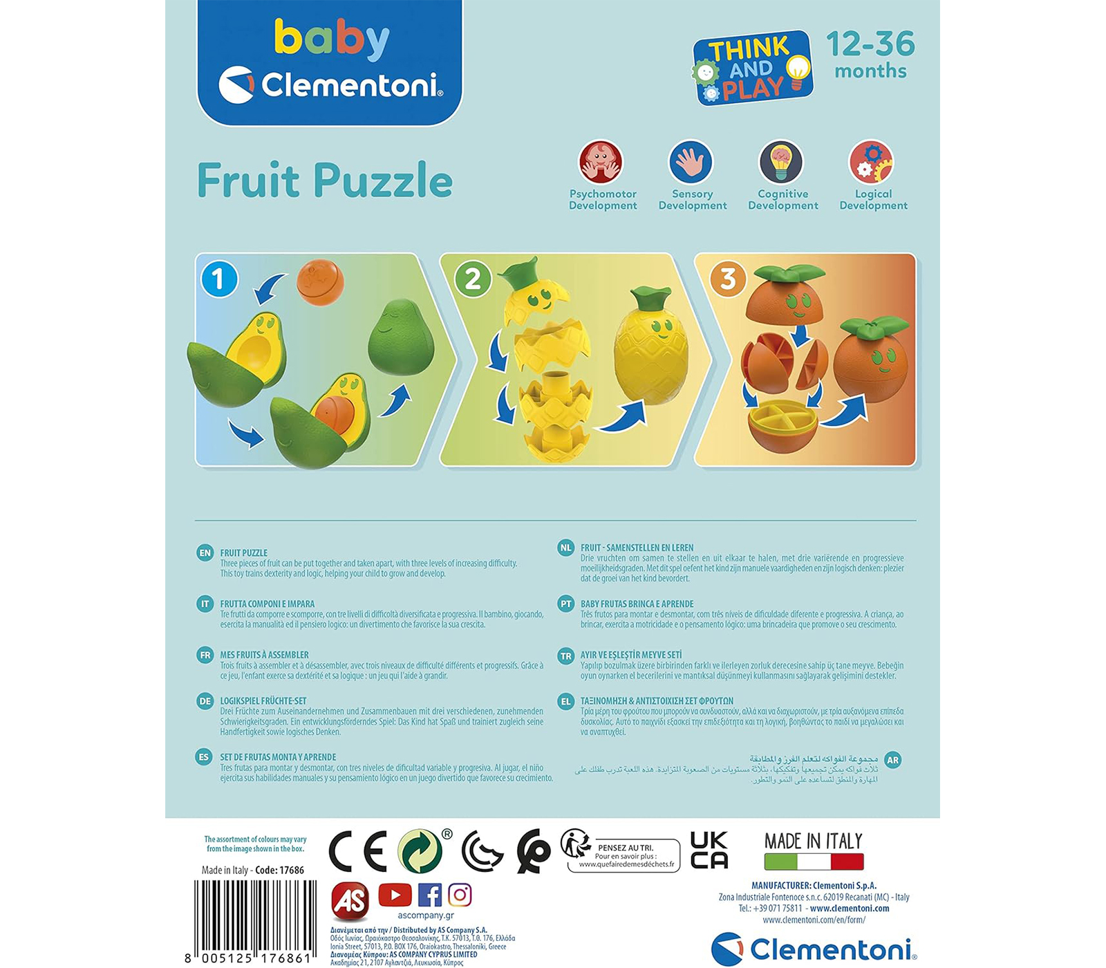 Un set giochi Baby Clementoni con tre coloratissimi frutti per nutrire la mente e stimolare la logica dei piccolissimi!