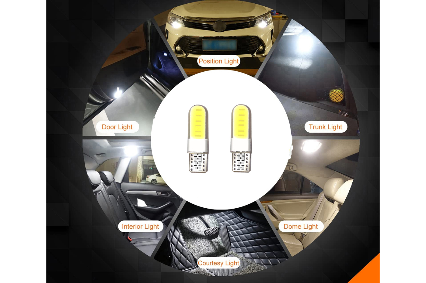 Coppia lampadine auto canbus T10 12 LED luce fredda interni auto 12V CA-02730