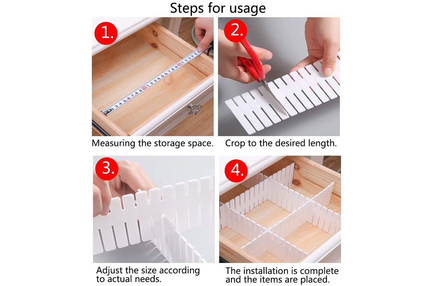 Set da 3 divisori 43x5 cm per cassetti separatori in plastica regolabili 001