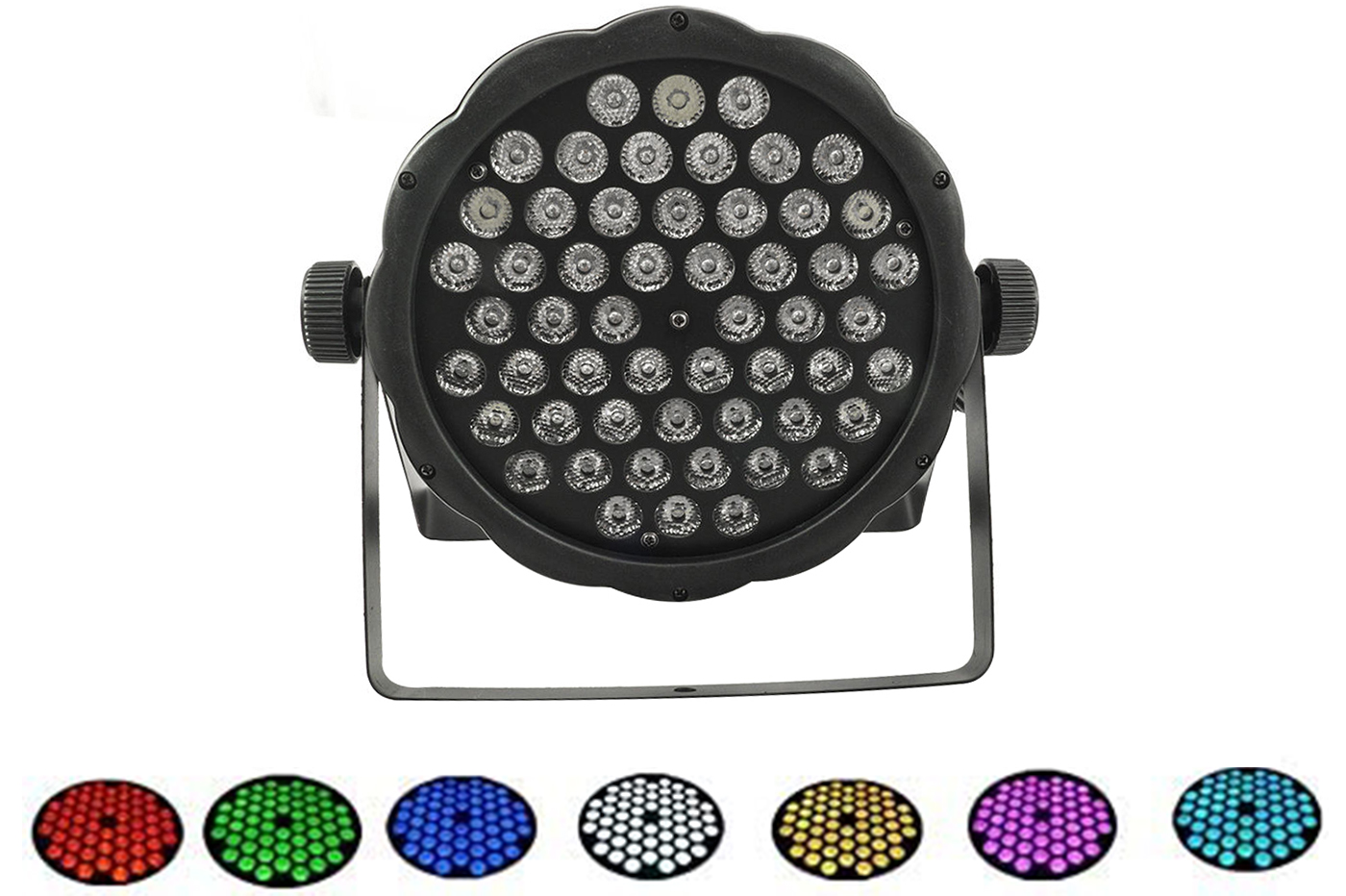 Faro multicolor con ben 54 led che emettono luce colorata a lampi con frequenza basata sul controllo sonoro. E' ideale per locali, pub, discoteche o semplicemente una festa in casa.