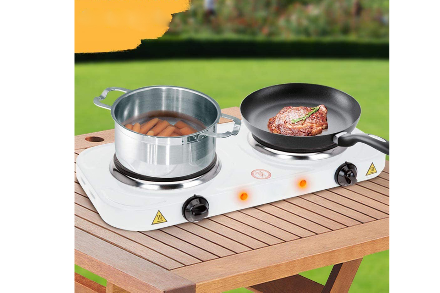 Fornello elettrico doppia piastra per cuocere cibi anche all'aria aperta, per esempio in campeggio! Grazie all'elevata resistenza, questa piastra garantisce ottime prestazioni, consumi ridotti e massima affidabilità.