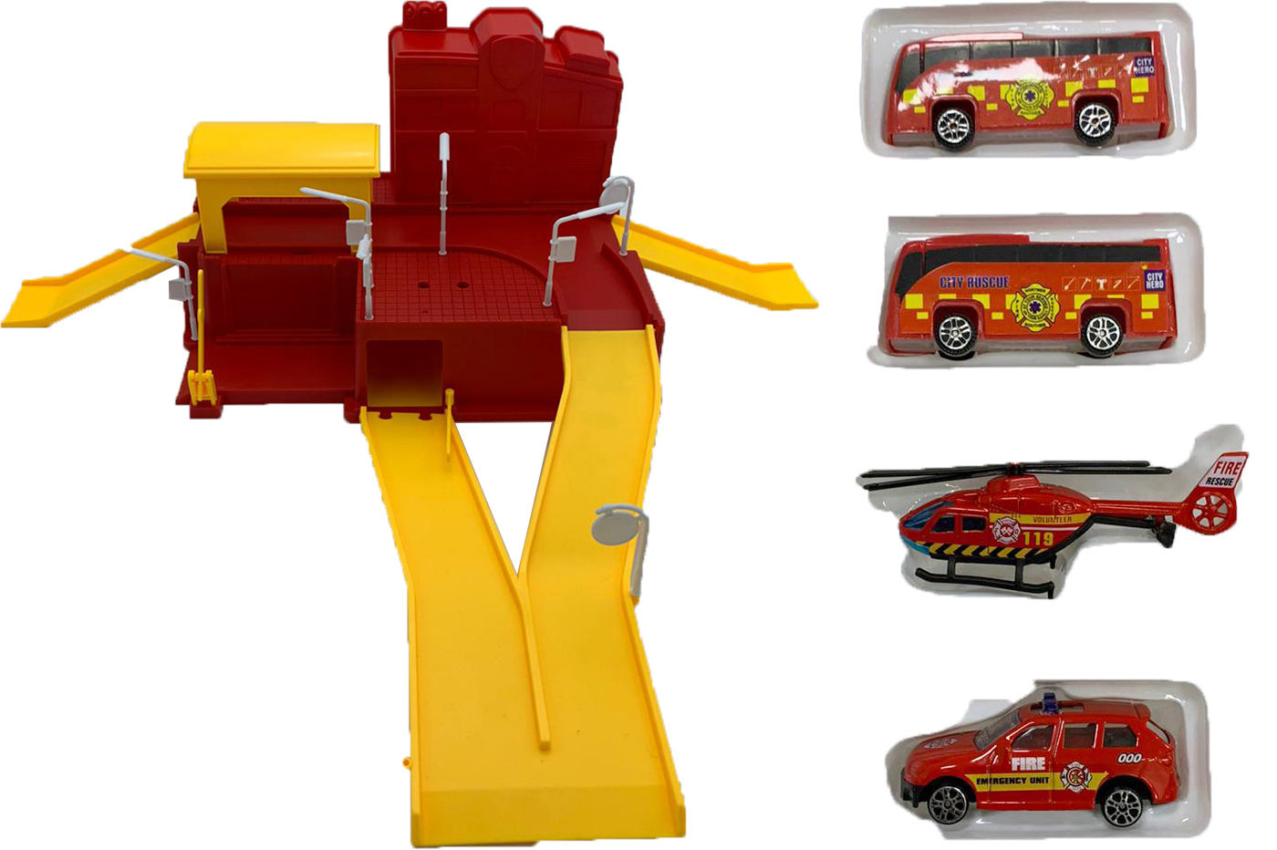 Divertiti con il garage dei pompieri. Un gioco di simulazione divertente ed educativo.