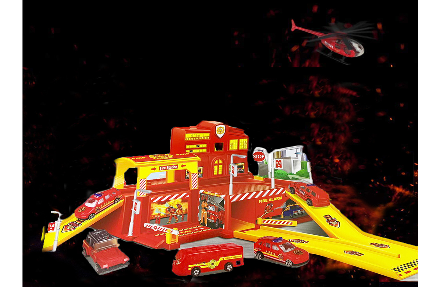 Divertiti con il garage dei pompieri. Un gioco di simulazione divertente ed educativo.
