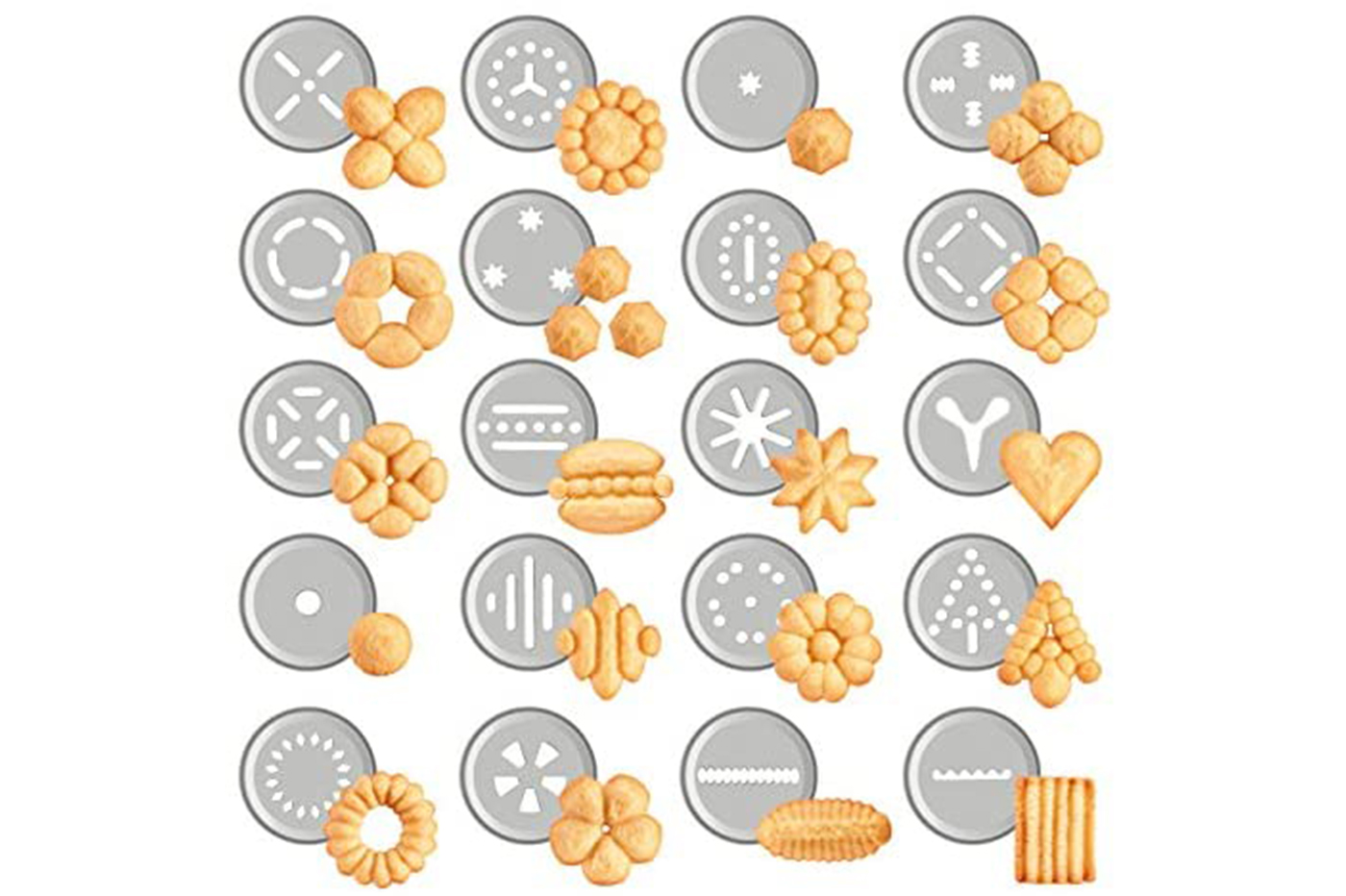 Formine e forme: 20 trafile incluse per un'ampia varietà di forme di biscotti.