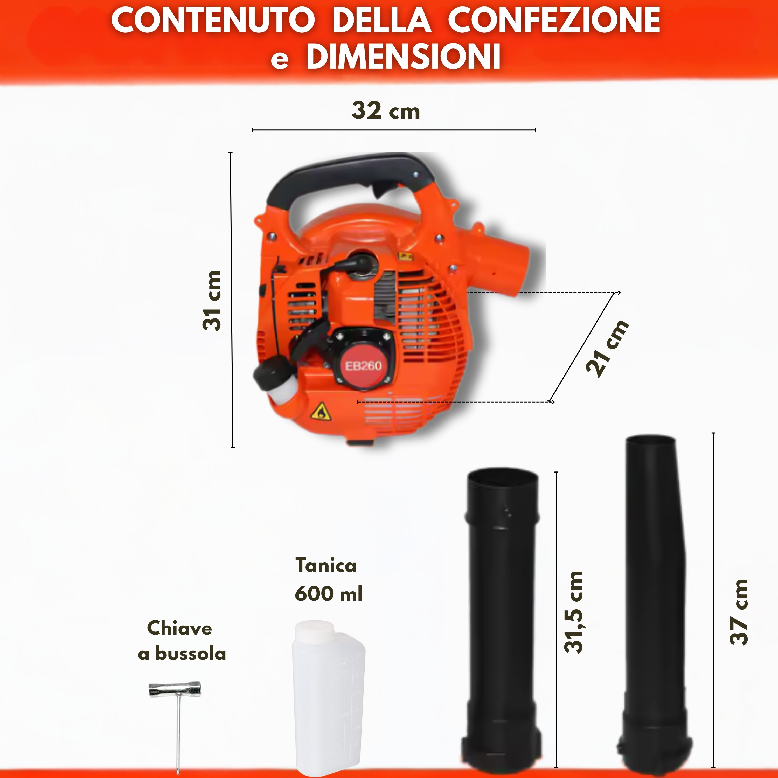 Soffiatore a scoppio adatto a pulire giardini, terrazzi e cortili dalle foglie e dalla neve; utile per sgomberare i luoghi di lavoro da residui vari e i luoghi balneari dalla sabbia. Leggero e maneggevole, grazie alla comoda impugnatura ergonomica, offre la possibilità di adoperarlo con una sola mano.