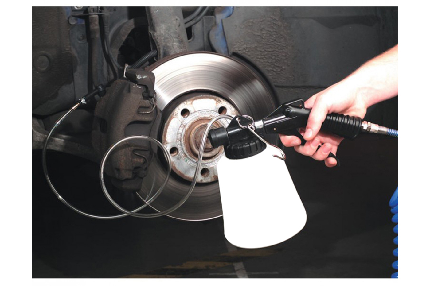 Devi spurgare i freni dell’auto per sistemarli? Il nostro kit restituirá forza ai tuoi freni, potrai utilizzarlo per la tua moto o la tua autovettura senza problemi. Lo spurgatore per freni estrae il liquido dal nipplo di spurgo, al fine di spurgare o cambiare completamente il liquido dei freni. Compreso di un tubo flessibile per l’aspirazione del liquido e 4 adattatori, una volta installato il kit avrai bisogno solo di un’alimentazione di pressione standard da 6-12 bar e il gioco sará fatto.
