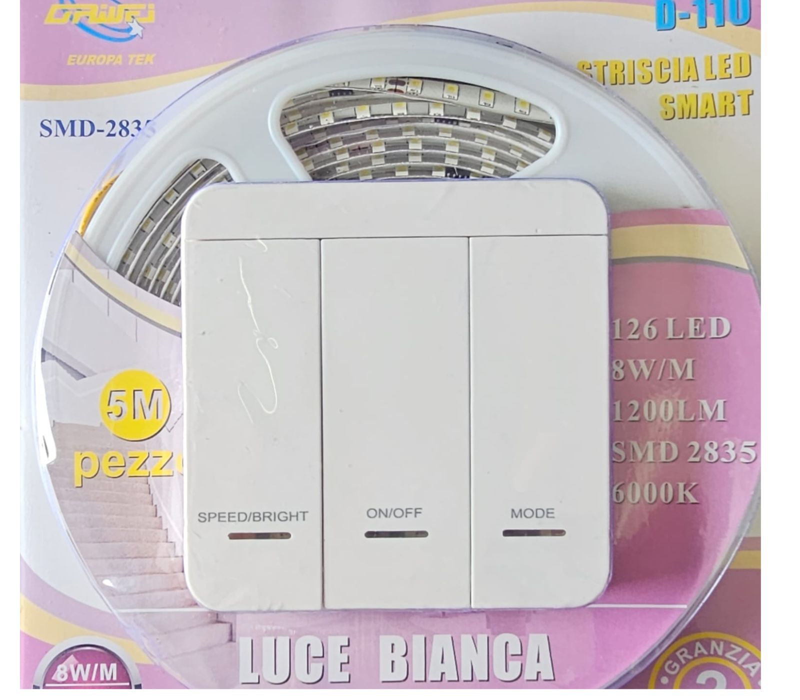 Striscia Led Fredda 5Mt 8W 24V SMD 2835 Autoadesiva telecomando Interruttore