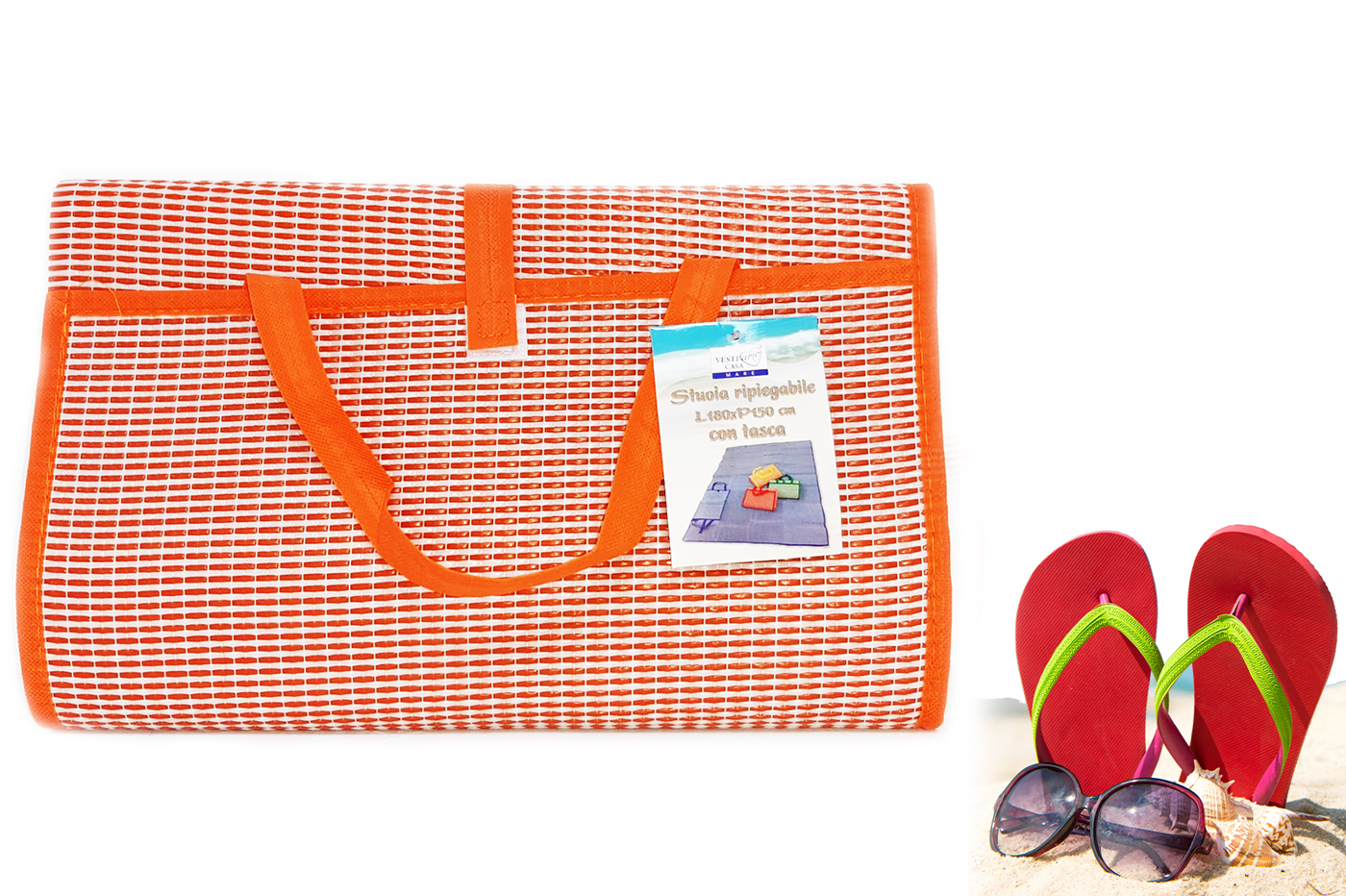 Stuoia ideale per mare, piscina e giardino! Leggera e pratica da portare grazie alle maniglie.